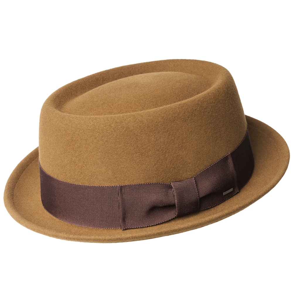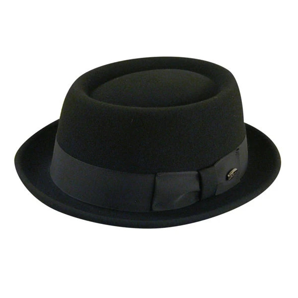 Bailey Darron Telescope-Crown Hat – New from Bailey and Made in USA, Darron has a telescope crown and a 1 1/2″ brim that can be snapped-down in the front or worn turned-up all the way-around. Litefelt(R) is a soft, comfortable wool felt from Bailey. Bailey Darron is trimmed with a grosgrain hat band. Trendy small-brim hat new from Bailey of Hollywood.