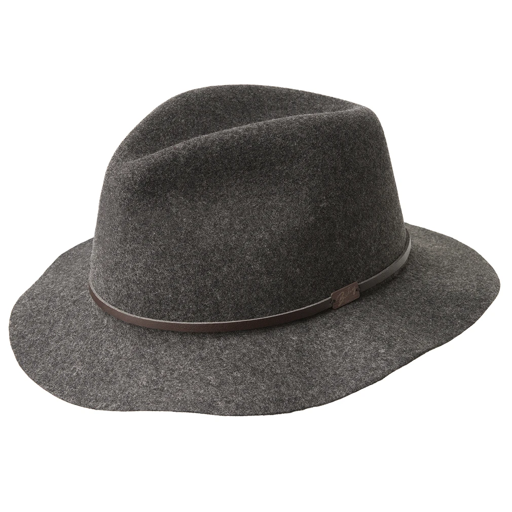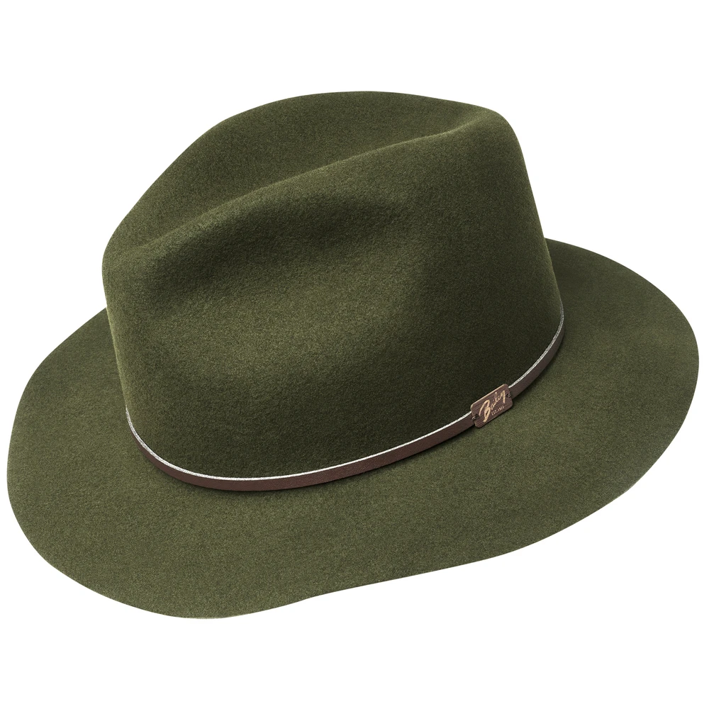 The Bailey Jackman Hat is a perfect hat for travel. Made of lightweight soft wool, this fedora crown hat has a 2 1/2 inch casual brim and thin hat band. The hat is packable, crushable, and comes with a carry bag for easy storage. Roll it up and bring it along- this comfortable fedora is fashionable and functional for any occasion. Made in the USA.