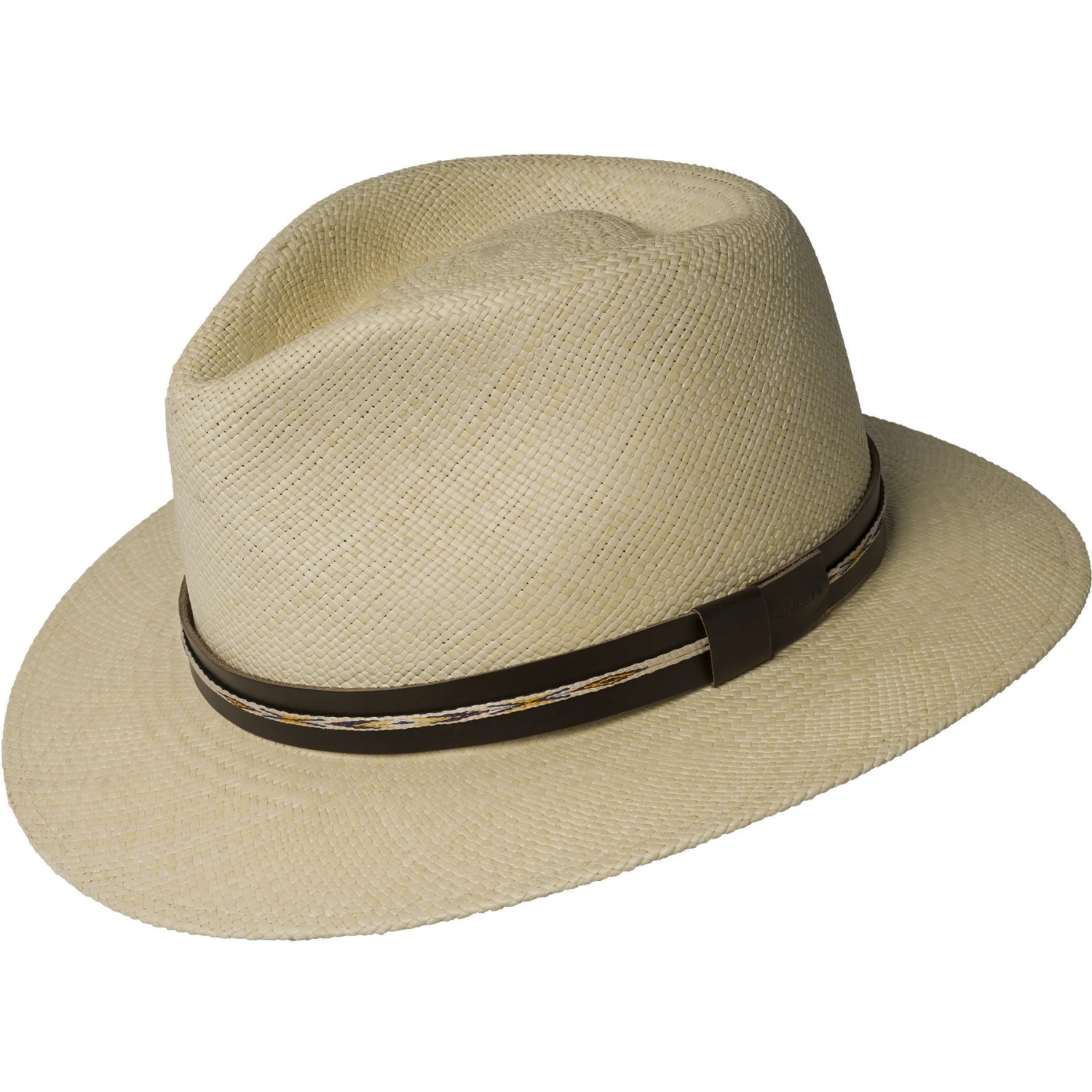 The Stansfield is a hand woven genuine panama hat from Ecuador in a brisa weave. This fedora features a teardrop crown and medium 2 1/2″ brim fedora with a natural leather trim, finished with multicolor cording.