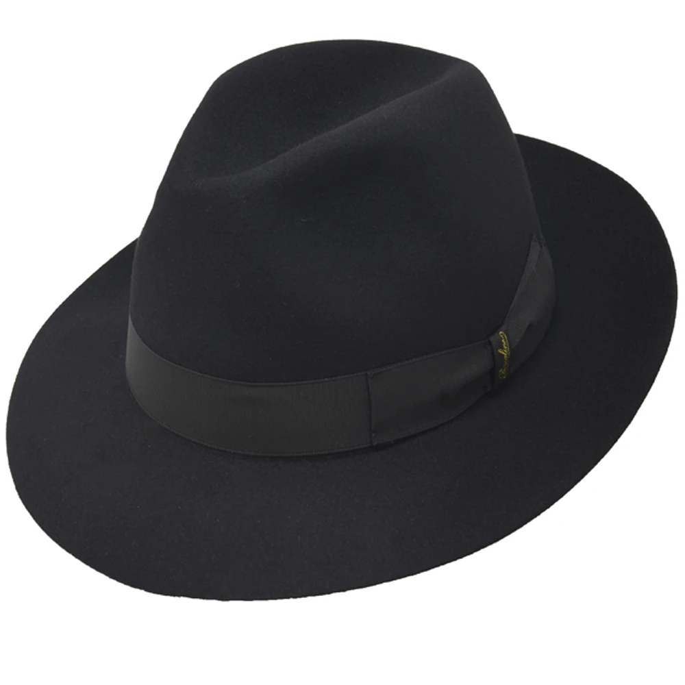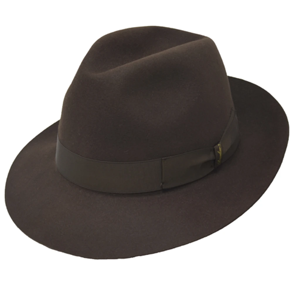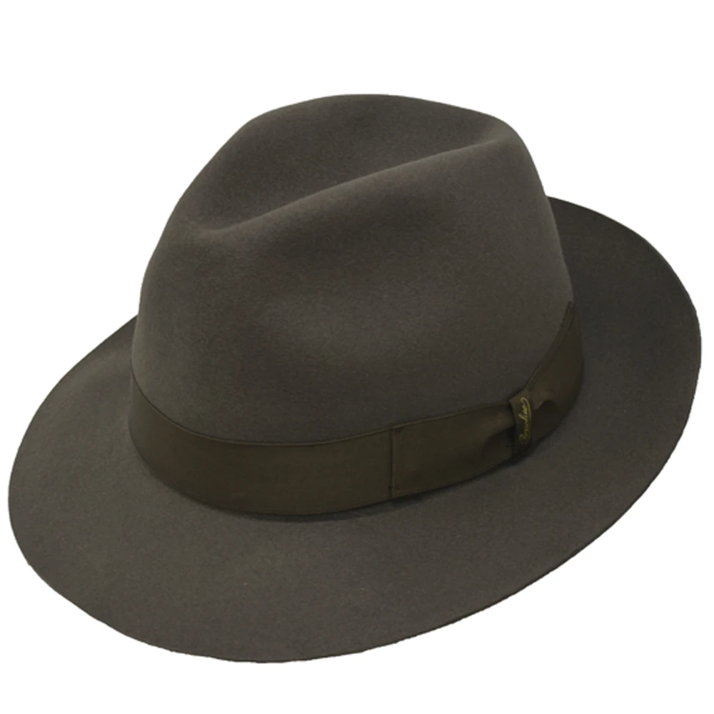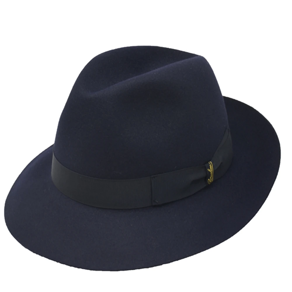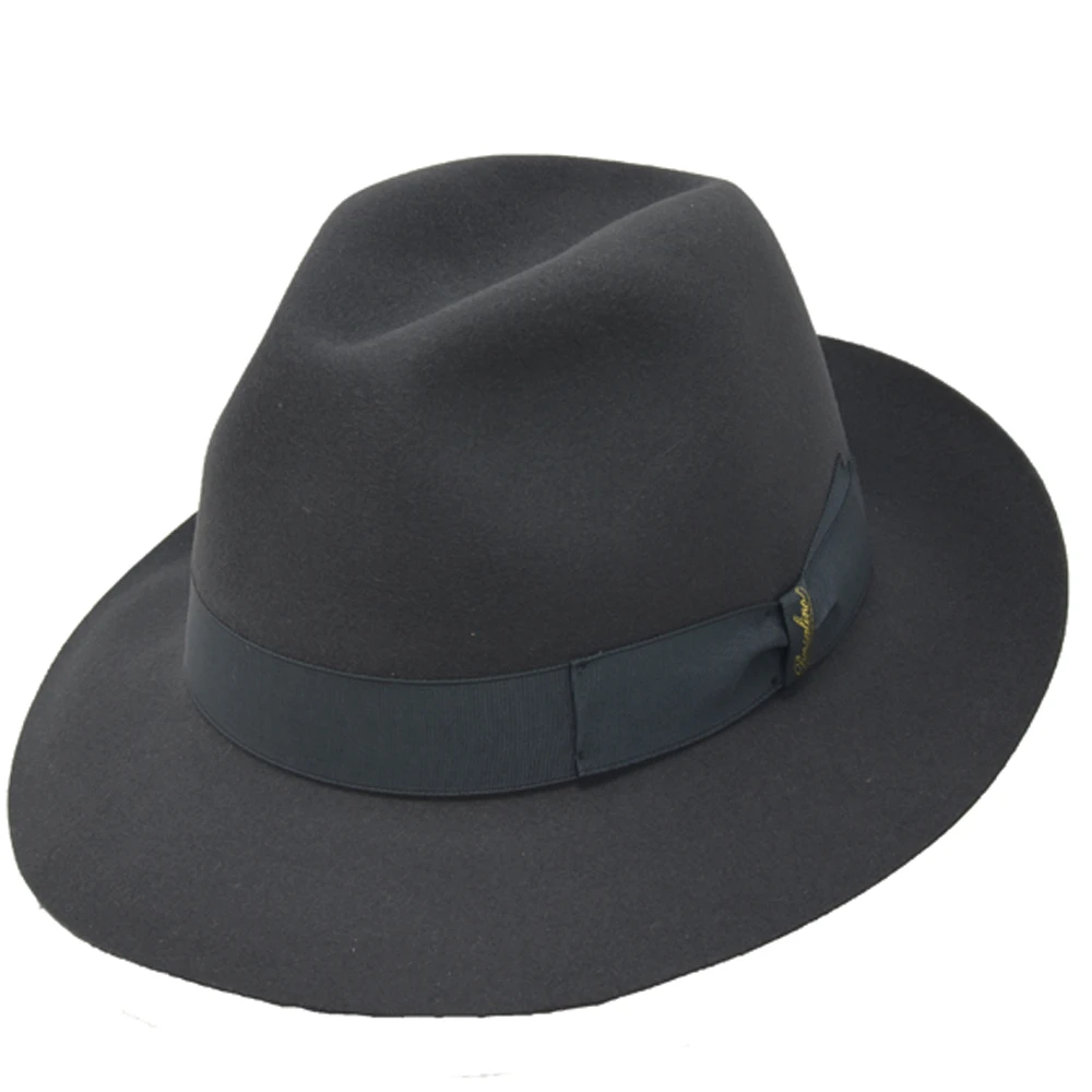 The Borsalino Classic fedora hat is a finely-made fedora hat made from 100% fur felt. This fedora features a 2 1/2″ brim, 4 1/2″ centerdent crown, interior lining, leather sweatband, and grosgrain hat band. A true standard in headwear, made in Italy.