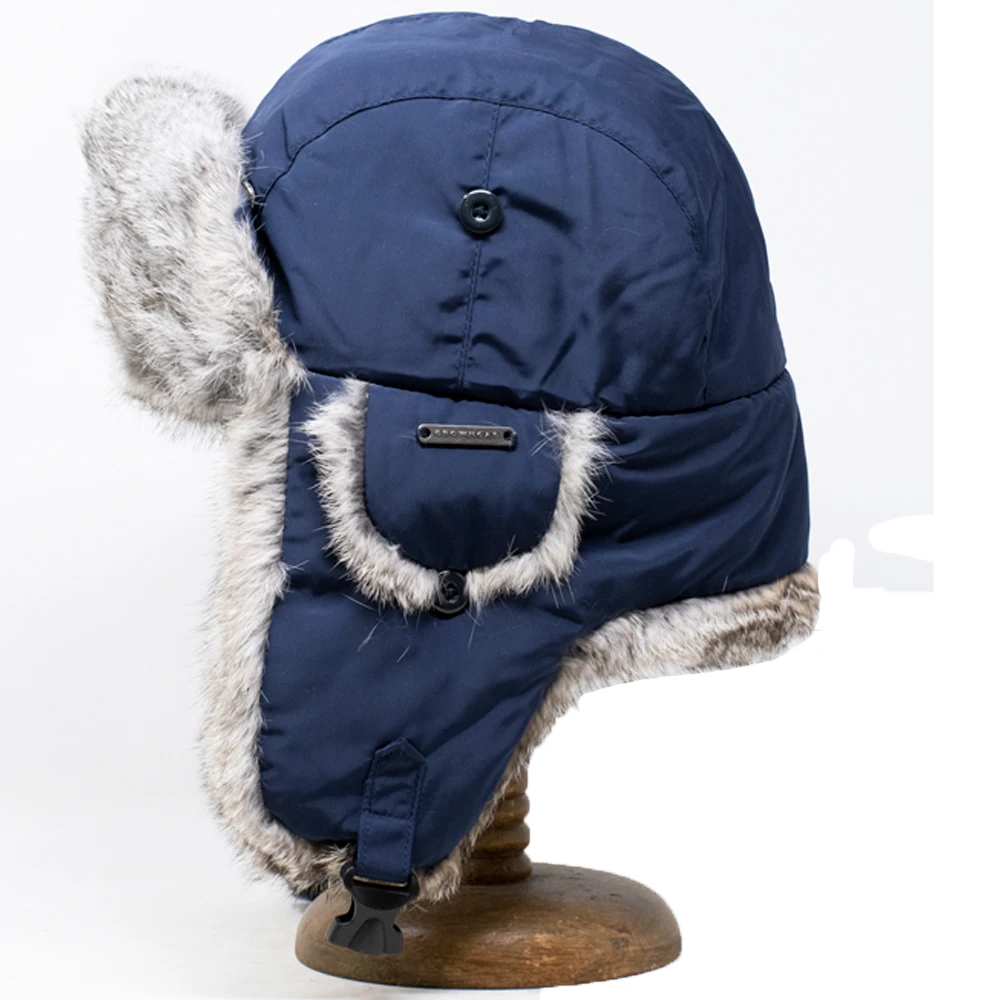 The Crown Cap Nylon Aviator with Rabbit Trim is a warm and stylish aviator hat made from nylon fabric and rabbit trim. The hat features fold-up earflaps with earbud accessiblity, geniune rabbit fur trim, plush quilted interior lining, and weatherproof exterior nylon shell. Made in Canada.