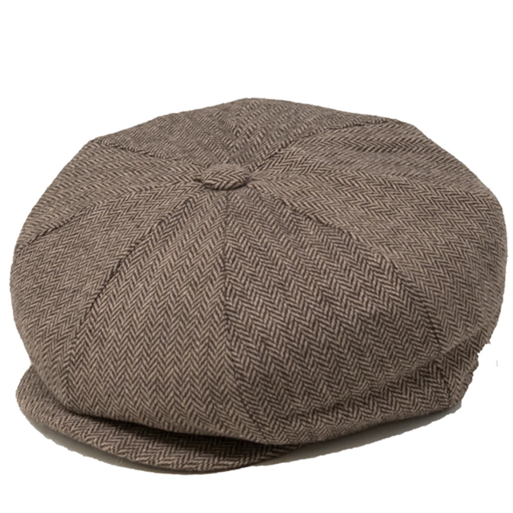 The DelMonico 8/4 Wool Herringbone Newsboy Cap is a comfortable and stylish newsboy cap made from 100% wool. The cap features a curved peak with snap, 8 piece design, comfort sweatband, and interior lining. Made in the USA by Capas Headwear.