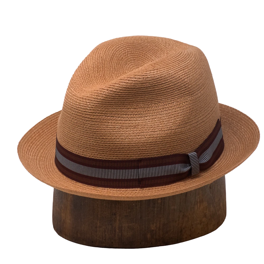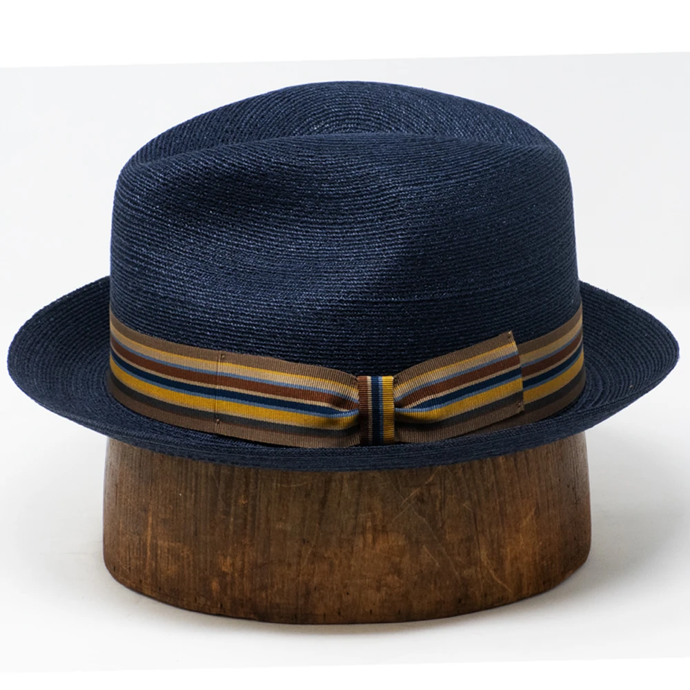 The DelMonico Antonio Hemp Fedora by Stefano is a classic and stylish fedora made from 100% woven hemp. This fedora features a 4″ centerdent crown, 2′ brim, cloth sweatband, and grosgrain hat band. Made in Italy for us by Stefeno Hats.
