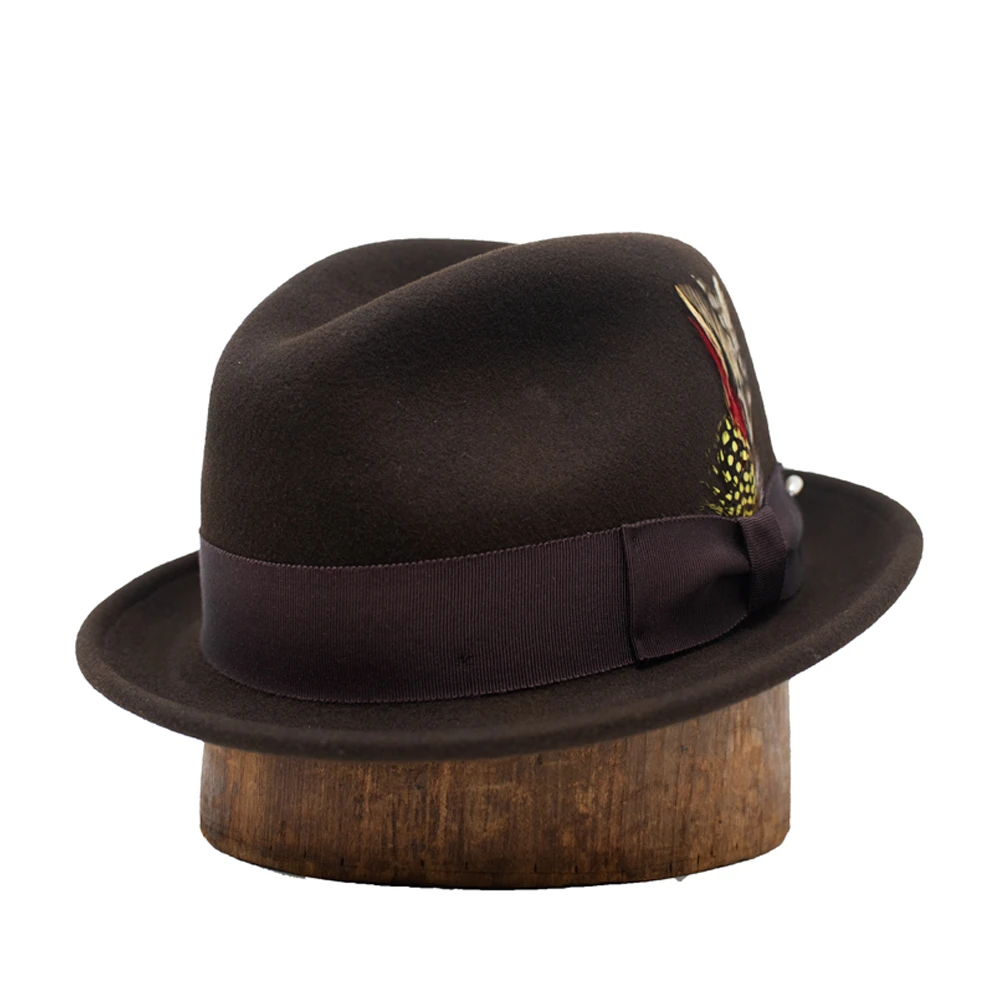 The DelMonico Blues Bros. Litefelt Fedora by Capas is a cool and classic fedora hat made from 100% litefelt wool. This hat features a 1 3/4″ brim with underwelt, 4″ crown, grosgrain hat band, cloth sweatband, and unlined interior. Fully packable and water repellent, made in the USA for us by Capas Headwear.