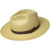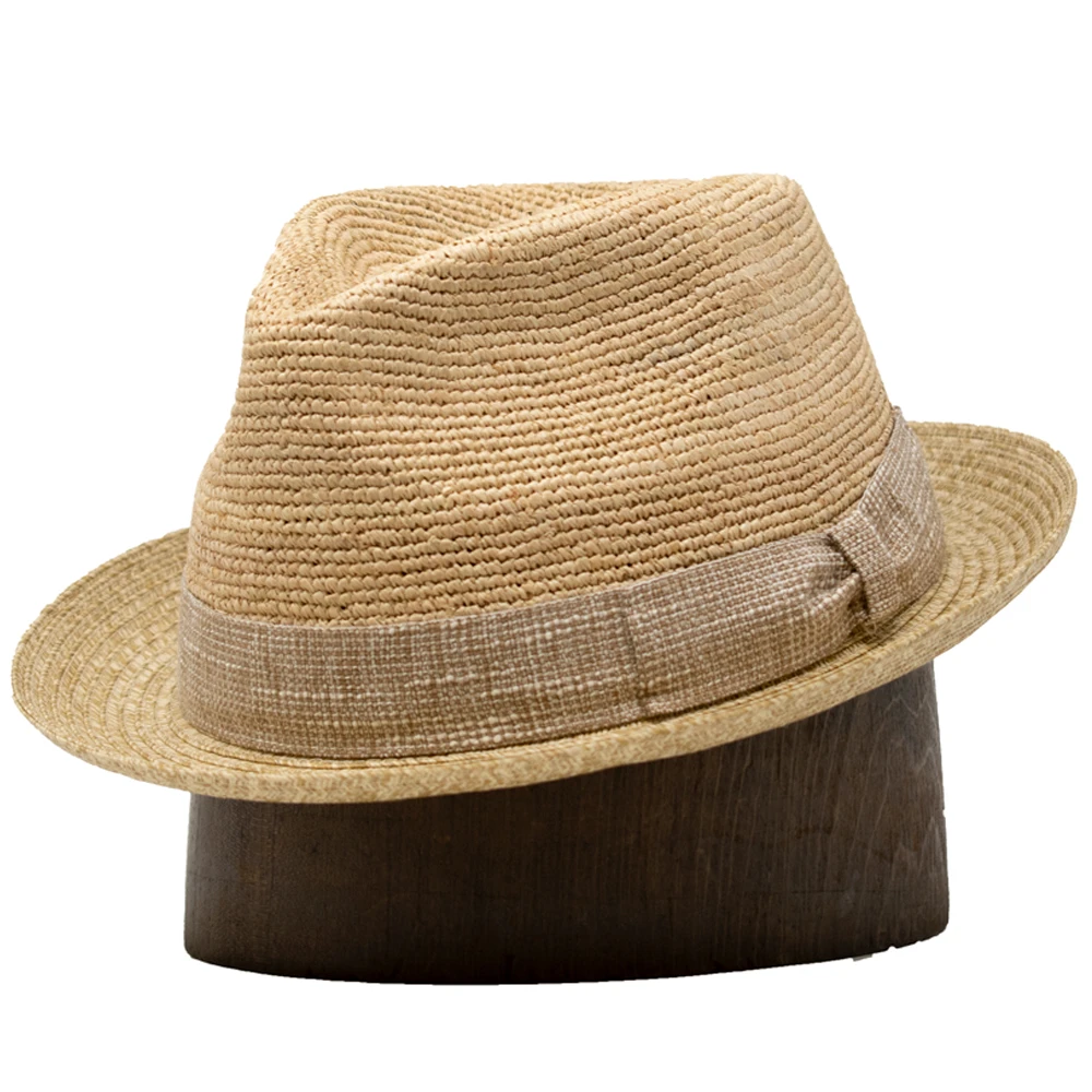 The DelMonico by Stefeno Dorian Toyo Braid Fedora is a cool and stylish trilby hat made from a blend of raffia and toyo weaves. The hat features a 4″ raffia crown, 1 7/8″ toyo brim, comfort sweatband, and fabric hat band. Made in Italy.