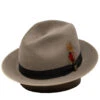 The DelMonico Coconut Braid Fedora is a fresh fedora hat made from 100% coconut braid. This hat features a 4 1/8″ centerdent crown, 2″ brim, cloth sweatband, and blue and red stripe grosgrain band. Made in the USA.