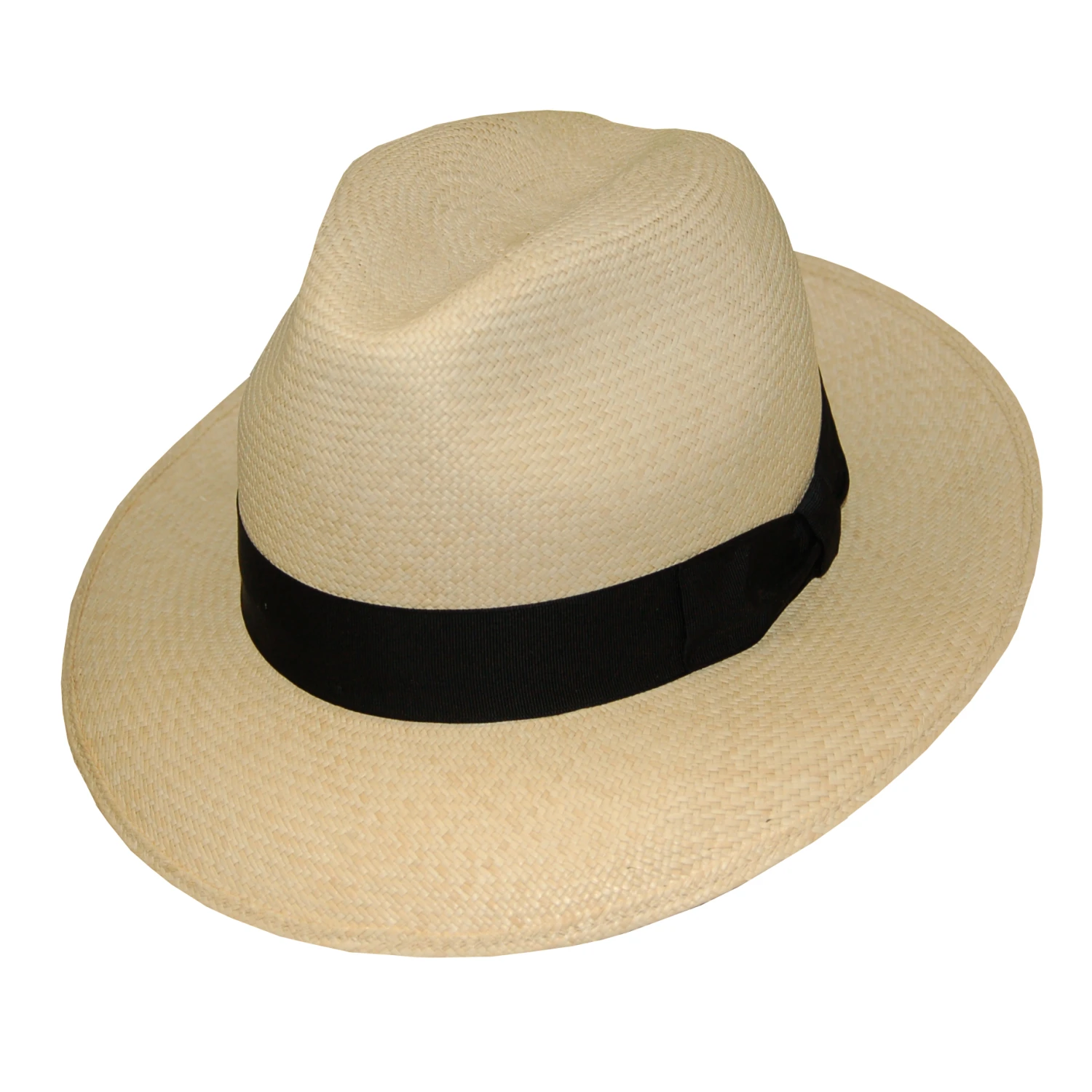The DelMonico Cuenca Extrafino Panama by Tesi is a beautiful example of the finest quality of straw hats available today. The extrafino panama straw, hand woven in Ecuador using centuries-old techniques, is almost like fabric with a smooth, soft and flexible feel. With a flattering 2 1/2 inch brim and 4 1/4 inch crown height, light enough for even the hottest days, this timeless classic look is trimmed with a black ribbon hat band and finished inside with a satin sweatband for a comfortable fit. Hand-finished in Italy especially for DelMonico Hatter by the quality Florentine Hat Maker Tesi.