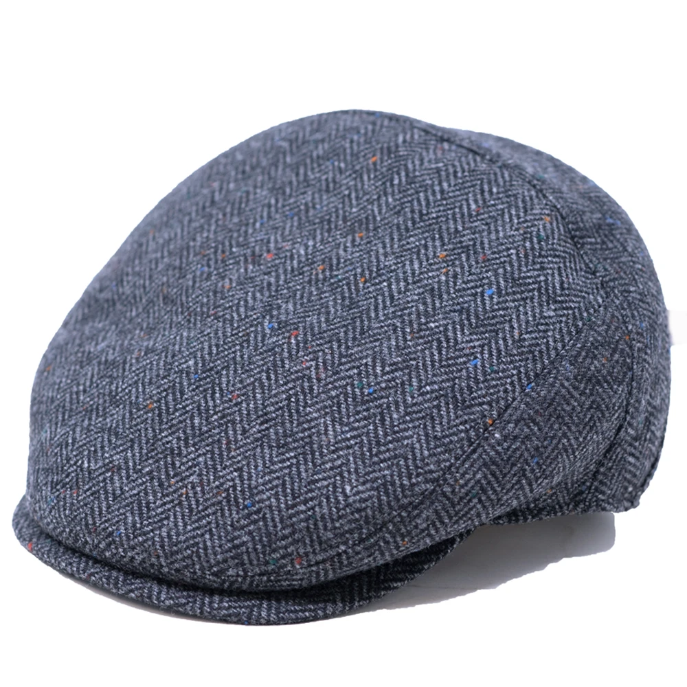 The DelMonico Dark Grey Herringbone Pub Cap is a handsome dark grey herringbone cap made from fine quality 100% wool. The pub style shape is a modern close fitting style with a flattering silhouette. Lined inside with a ribbon sweatband, this cap is fashionable and comfortable. Made in Italy. Please note that the Doria caps run a full size small. We recommend buying one size larger than you usually wear.