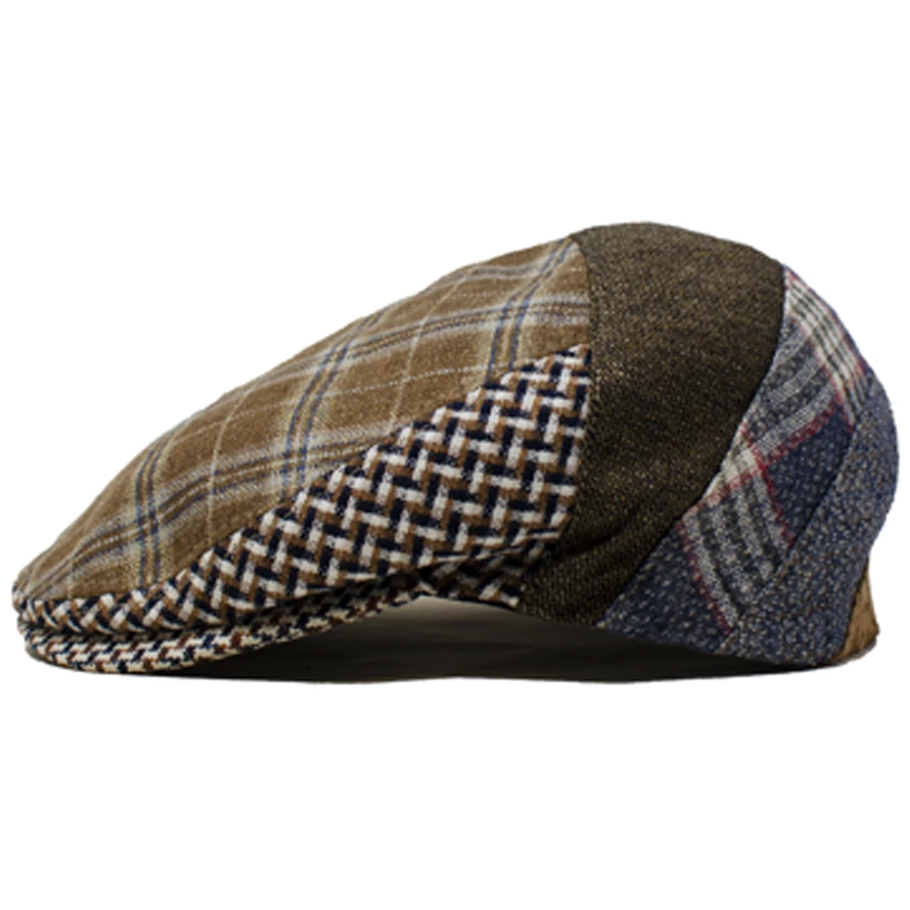 The DelMonico Italian Bellagio Ivy Cap by Capas is a unique and stylish ivy cap made from 70% silk and 30% linen fabric. This cap features a mid-curved peak with sewn brim, angular side seam, stylish multi-pattern patchwork design, and cloth patterned interior lining. Made in Italy.