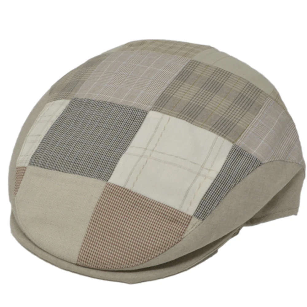 The DelMonico Italian Ivy Linen Windowpane Cap is a wonderful summer cap made from cotton blend fabric in a patchwork design. This ivy cap features a one-piece design, rounded side seam, cloth sweatband, and satin interior lining. Made in Italy.