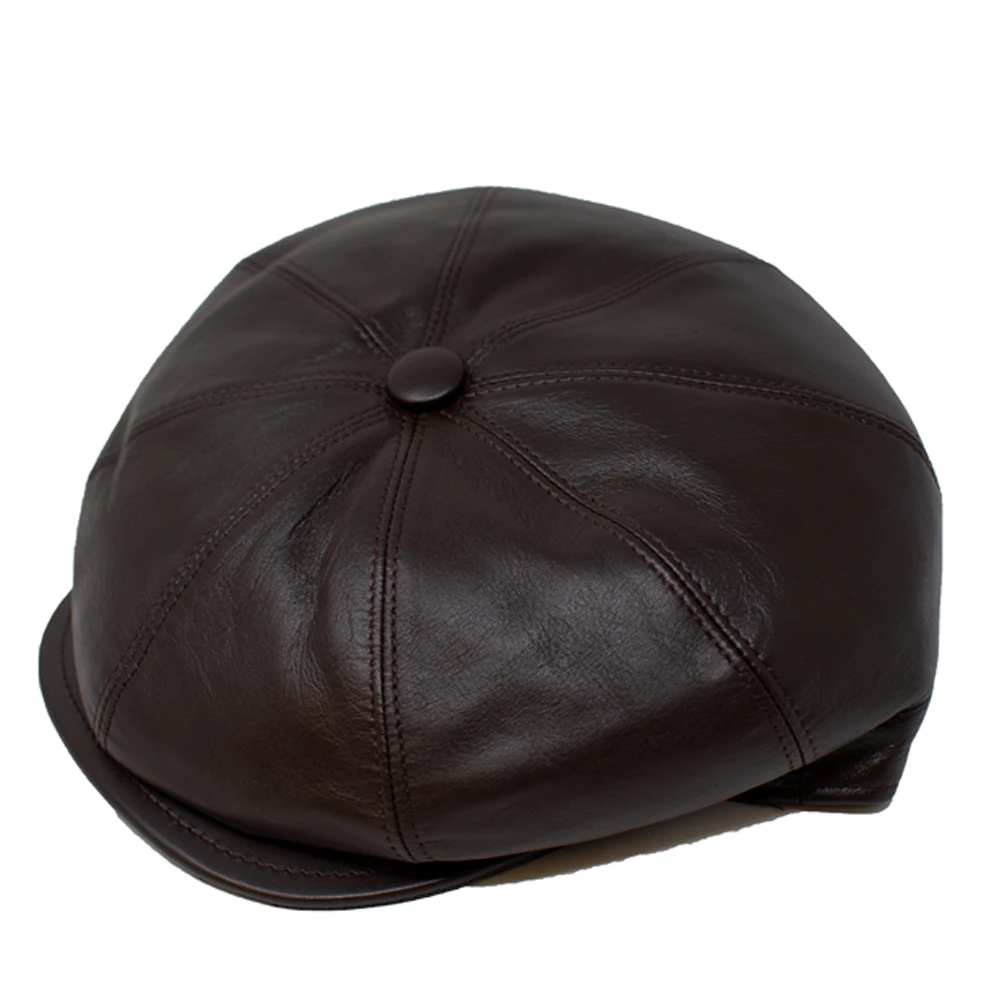 The DelMonico Italian Leather Newsboy Cap by Capas is a luxurious and stylish made from 100% leather. This soft and comfortable cap features a mid-curved peak with dual snaps, cloth sweatband, quilted interior lining, and 8-piece design. Made in Italy.