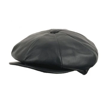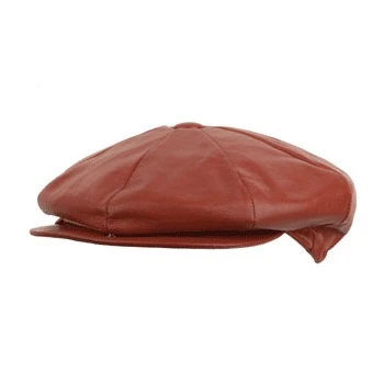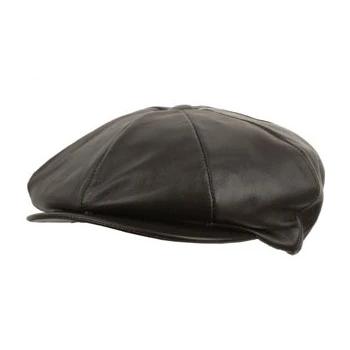 The DelMonico Lambskin Leather Newsboy Cap is a soft and luxurious 8/4 cap made from 100% lambskin leather. This cap features a mid curved peak with snap brim, cloth sweatband, satin lining, and full shape. A superb cap at a great price. Made in the USA.