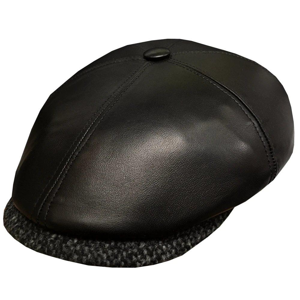 The DelMonico Leather Newsboy Cap by Alfonso D’Este is a paneled newsboy style cap made from cowhide nappa leather. Handmade in Italy by Alfonso D’Este. Featuring a curved wool tweed peak, the hat is also fully lined with a soft fabric lining. A sleek hat which makes the perfect accessory for the colder weather!