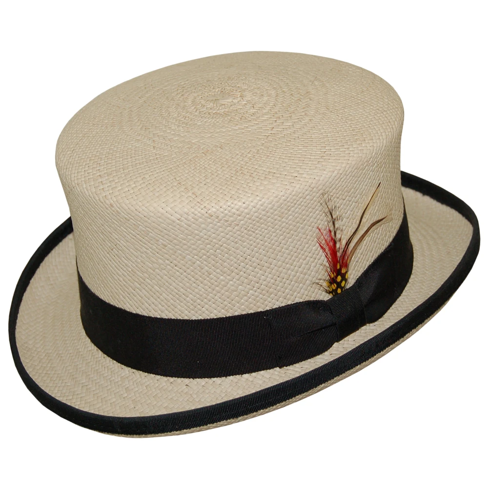 The DelMonico Panama Straw Top Hat is a summer top hat made from a genuine panama straw handwoven in Ecuador. This classic shape top hat has a 4″ crown which flares out towards the top. The edge of the brim is bound in a grosgrain binding which matches the grosgrain hat band. The interior of the hat has a padded sweatband for a comfortable fit. The straw is woven in Ecuador and the hat is blocked in the USA.
