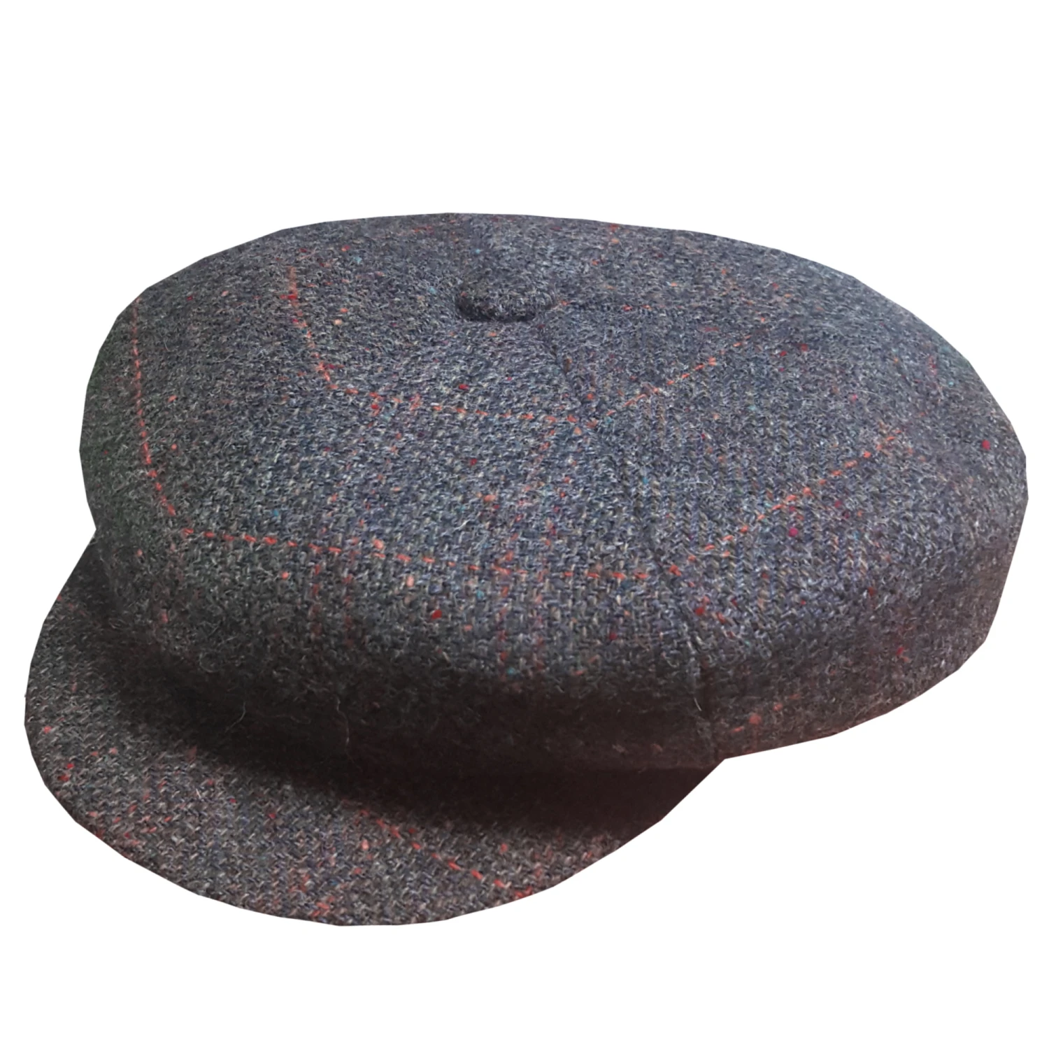 The Jonathan Richard Baker Cap w/Windowpane Overlay is a beautifully soft version of the classic newsboy cap, handcrafted in Ireland from 100% wool. The traditional crown is 8/4 paneled with a button top, unattached to the front peak which gives it a fuller, looser shape. The peak itself is also soft, a rounded shape that can be gently curved for easier packing and travel. A lightly lined interior keeps it warm and comfortable, making this a great choice for chilly weather. Made in Ireland.