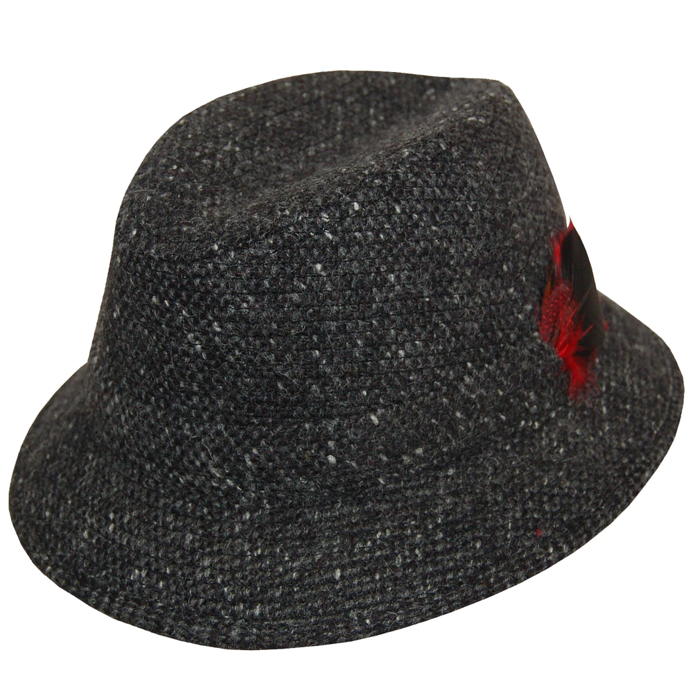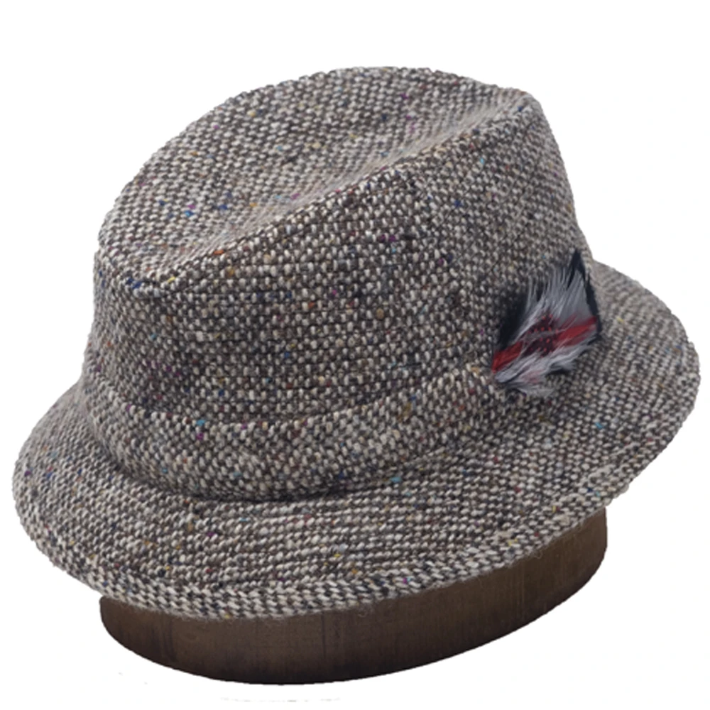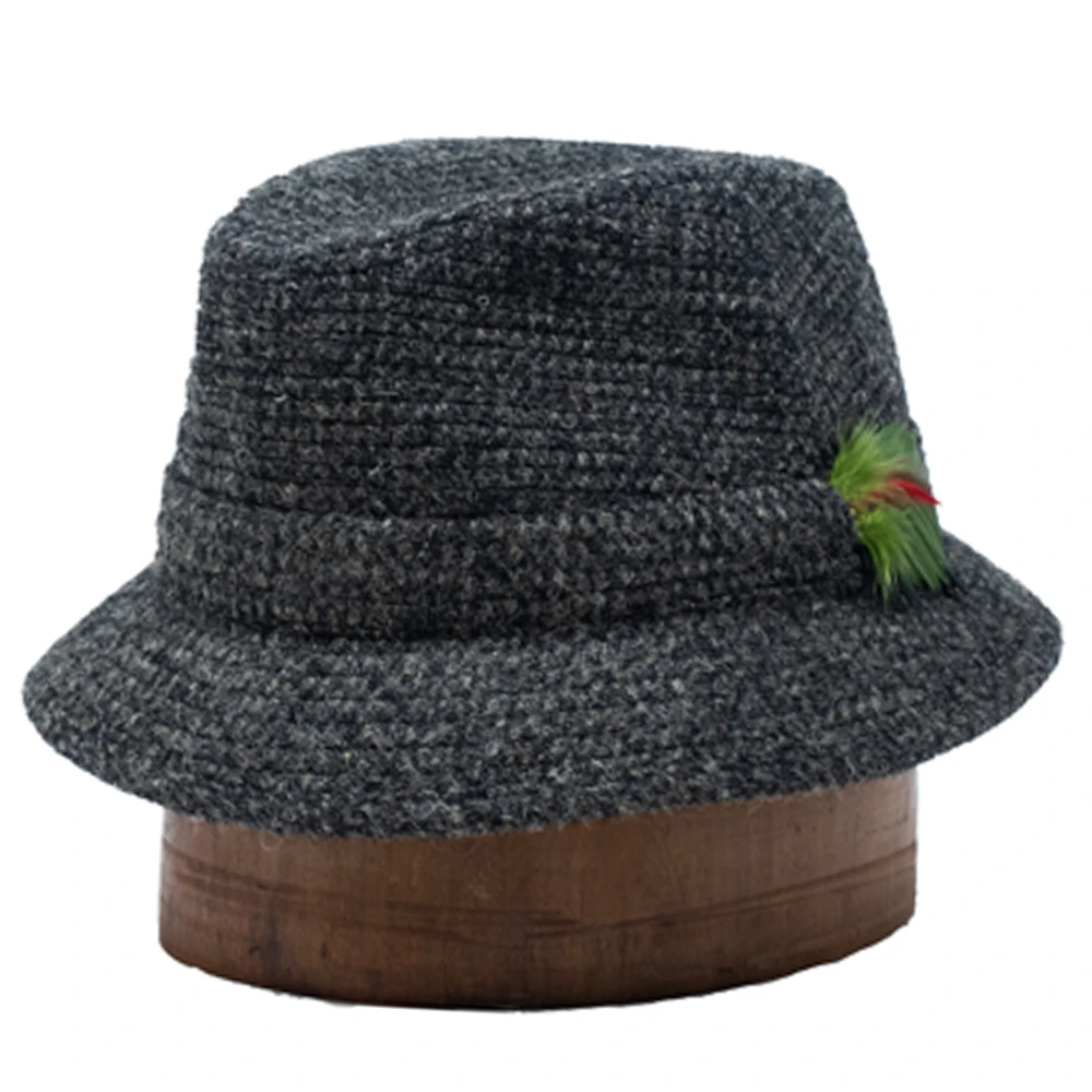 The Jonathan Richard Liffey Tweed Walking Hat is a traditional Irish walking hat updated with a little modern style. Made from 100% wool woven in a handsome herringbone tweed pattern flecked with a variety of colors for a complex textured look, this hat is soft and flexible with a center dent crown and downturned brim. The self-hat band had a removable feather detail, and the interior is lightly lined in quilted satin with a comfortable fabric sweatband. Crushable, packable, made for travel and adventure, this hat will keep you warm and stylish no matter where you go. Made in Ireland. Note sizing chart: Small is labeled size 7 or 56 cm, Medium is 7 1/4 or 58, Large is 7 1/2 or 60, XL is 7 3/4 or 62, and XXL is size 8 or 64 cm. Note: this hat tends to run large.