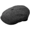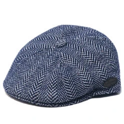The Kangol Herringbone 507 is a classic Kangol shape- a sleek cap with a deep back and sewn front peak. Here it takes on elements of an old fashioned newsboy cap with paneled construction and a button crown. The soft knit fabric is warm enough for chilly days without being too heavy, and the cap has an all-over herringbone pattern for a sharp sophisticated look that never goes out of style. An oval leather Kangol patch is on the left side of this cap.