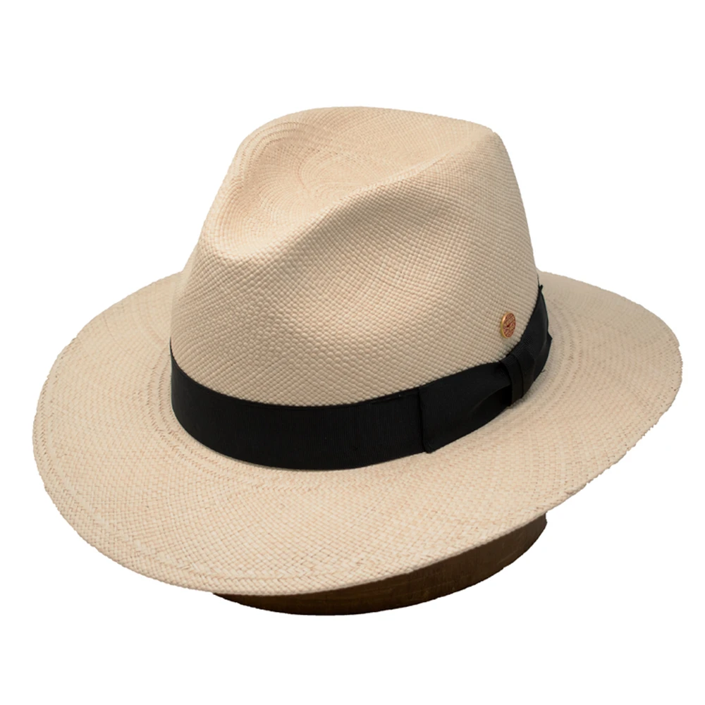 The Mayser Menton Downbrim Panama Hat is a stylish and functional downbrim fedora made from 100% toquilla palm straw. This hat features a 4″ crown, 2 5/8″ by 2 7/8″ brim, comfort sweatband, grosgrain hat band, and sewn Mayser pin. This hat also offers UV 80 sun protection and is treated to be water resistant. Designed in Germany, made in Slovakia.