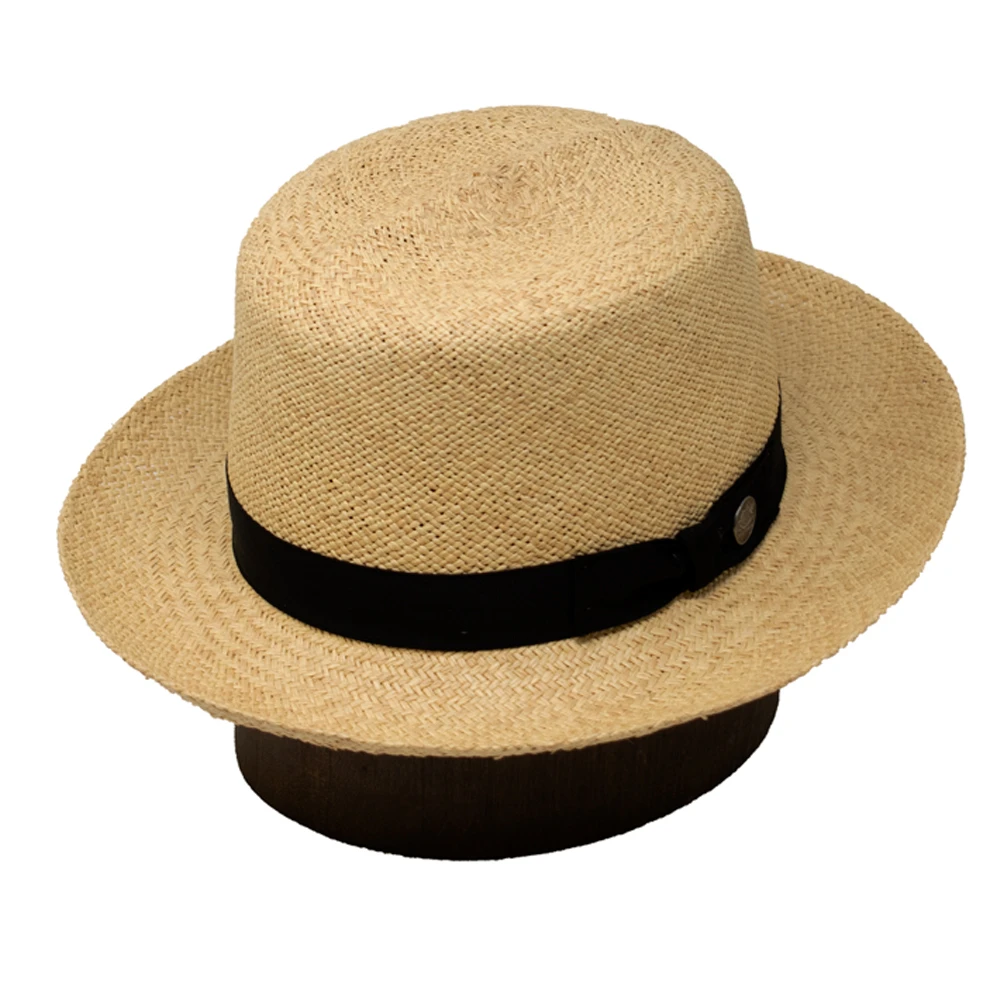 The Stetson Bavaro is a rollable optimo crown hat made from 100% twisted panama. This hat features a 4″ crown, 2 1/2″ brim, grosgrain hat band with pin, Drilex sweatband, and soft finish. Made in the USA.