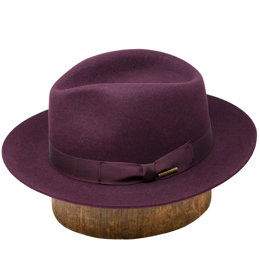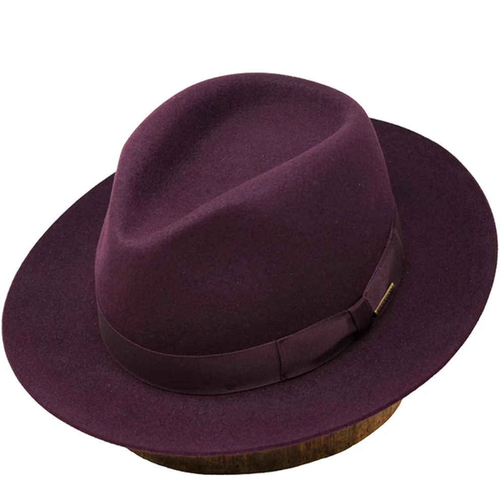 The Stetson Euro Fur Felt Fedora is a stylish and versatile fedora made from 100% fur felt. This fedora features a 4″ crown, 2 3/8″ brim, comfort sweatband, and interior lining. Part of the Stetson Euro Collection. Made in the Czech Republic. Note: this hat tends to run large.