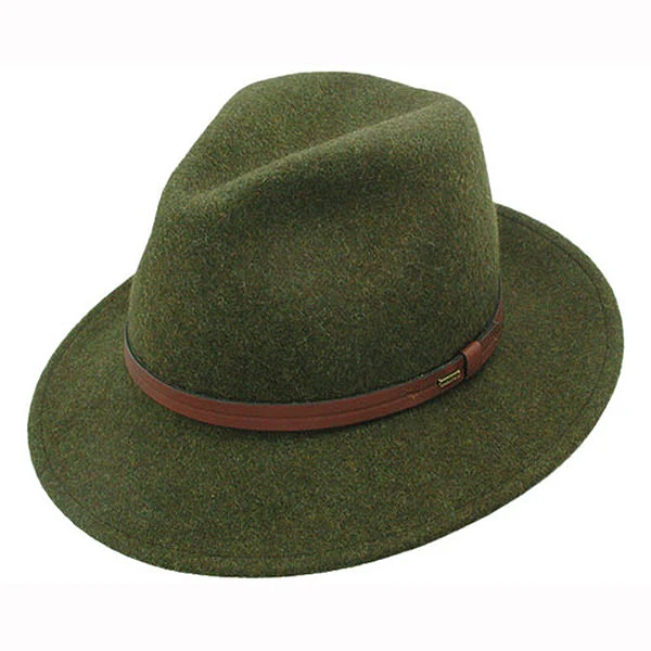 Built for excitement, the Stetson Explorer is a 2 1/2 inch brim safari style hat with a pinch front crown and simple leather hat band. The 100% wool is textured lightly to add visual interest and to keep it looking new year after year. The fabric is treated to be completely packable, crushable, and water repellent so it can be worn in any weather and travel everywhere you do. A fabric sweatband inside keeps it comfortable. The perfect hat for your next adventure.