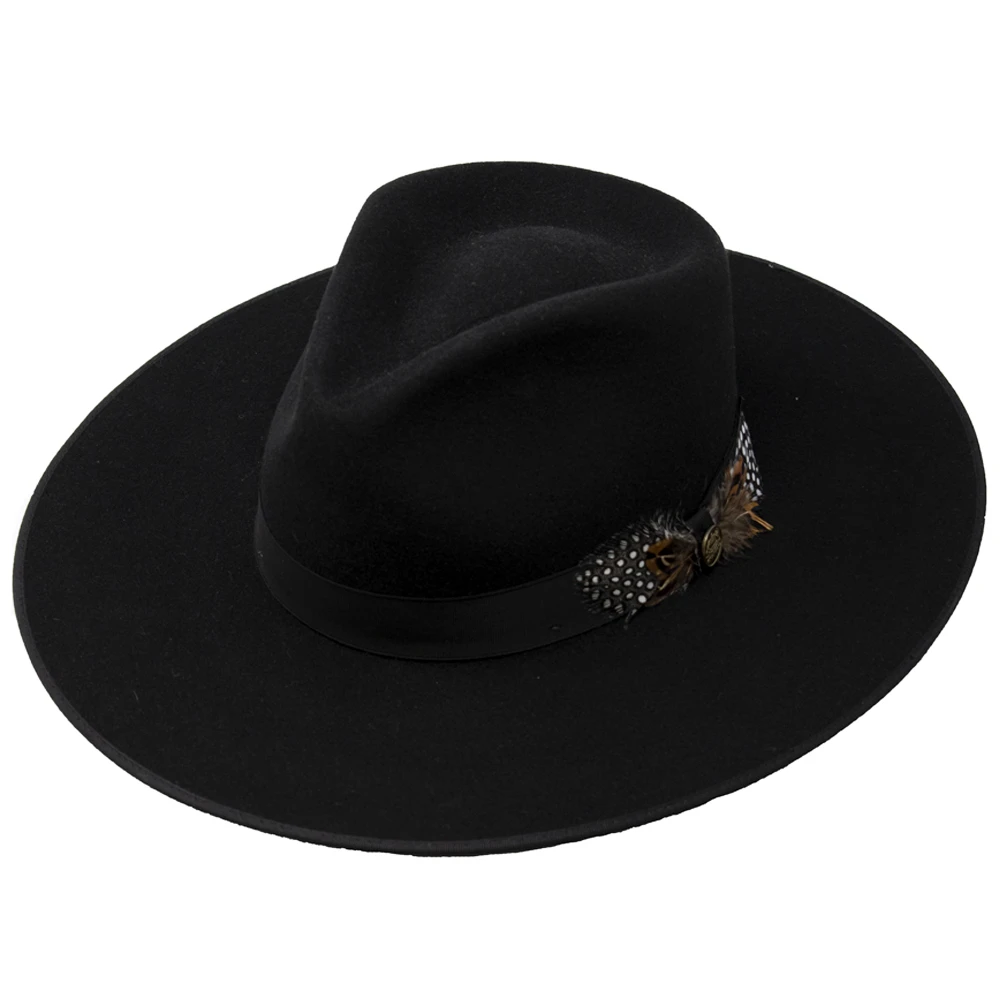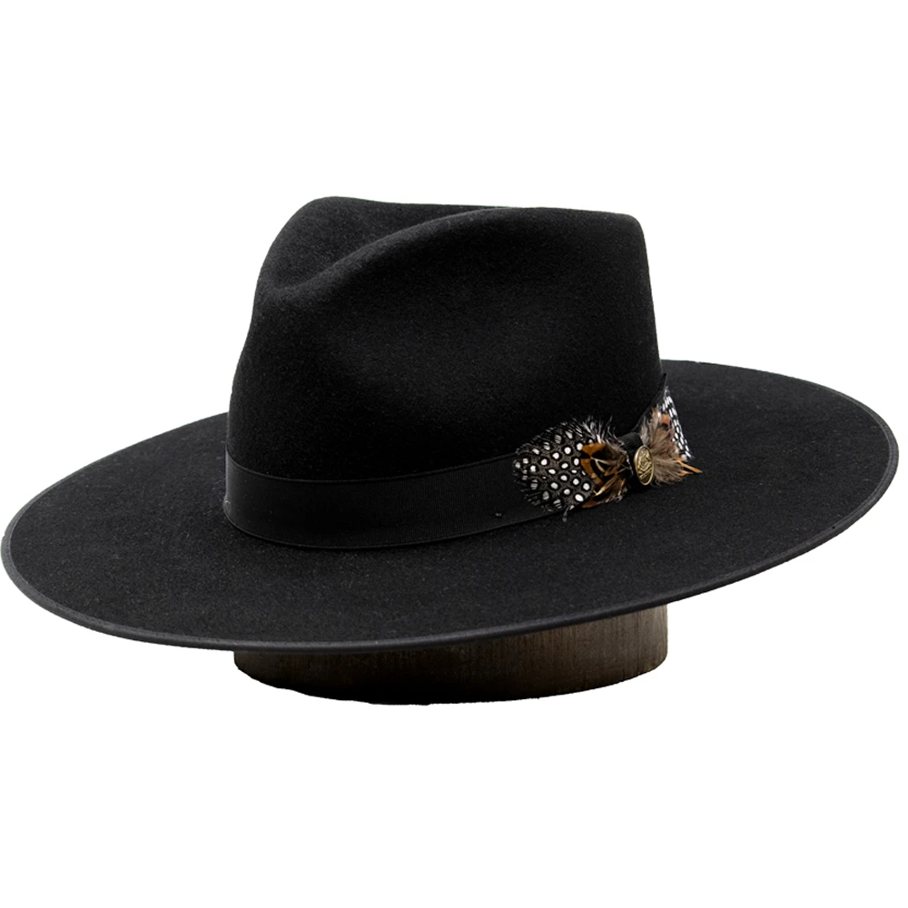 The Stetson Midtown B Wool Wide Brim Fedora is a classic and stylish wide brim fedora made from 100% wool felt. This fedora features a flat 3 3/4″ brim with bound edge, 4″ teardrop crown, interior lining, drilex sweatband, grosgrain hat band, and dual feathers with pin. Made in the USA.