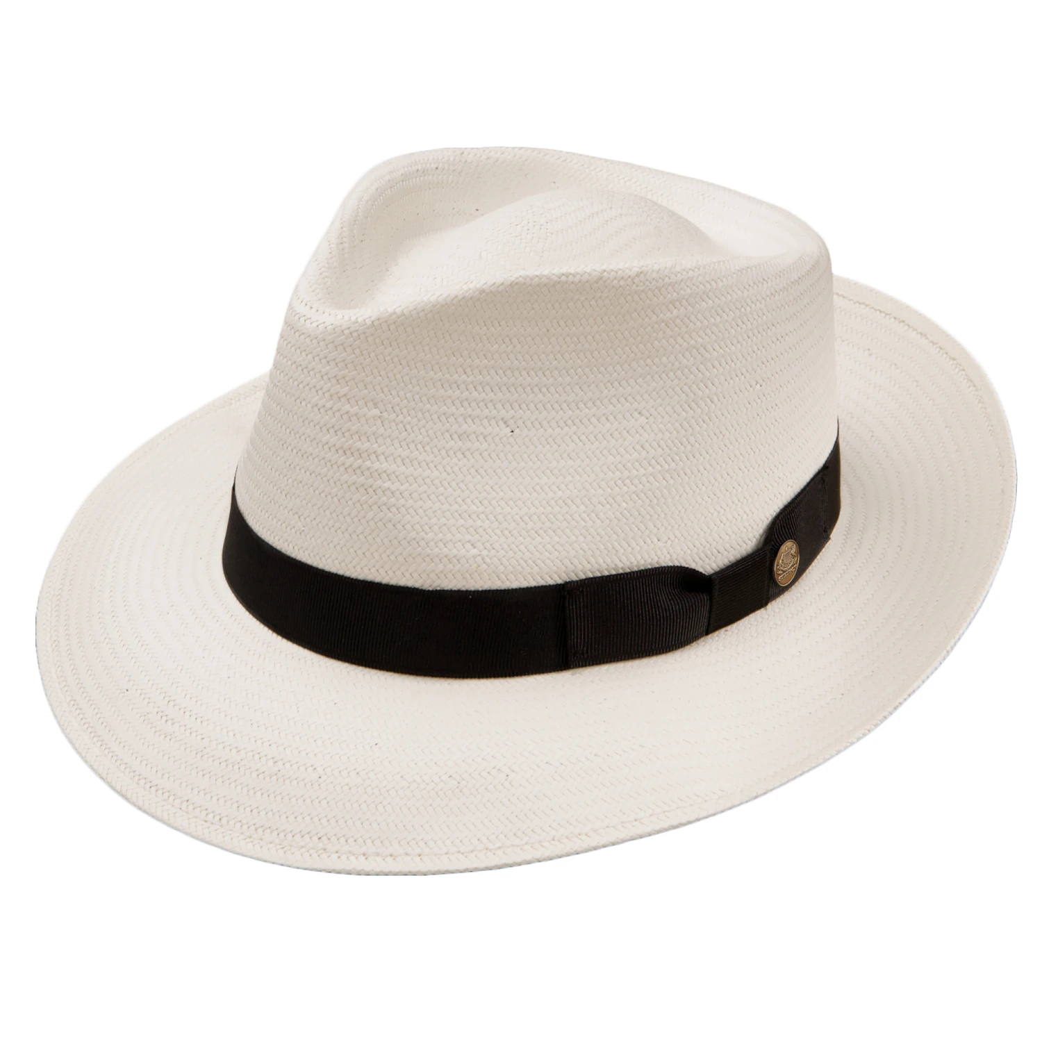 The Stetson Reward Shantung Straw Fedora is a clean, bright hat ideal for summer’s most memorable events. A teardrop 4 1/4 inch high crown and 2 1/2 inch snap brim make a perfectly balanced shape flattering on almost anyone, and the classic black ribbon band is a timeless touch. Smooth, sleek 5 Bu Shantung straw has a firm sturdy feel, making this a great hat for both formal events and casual get togethers. Finished with a round Stetson pin.