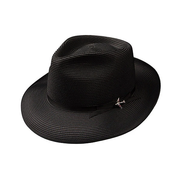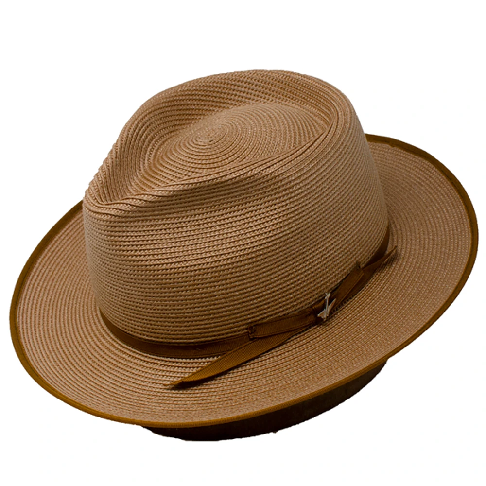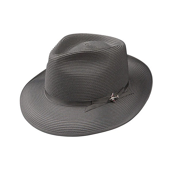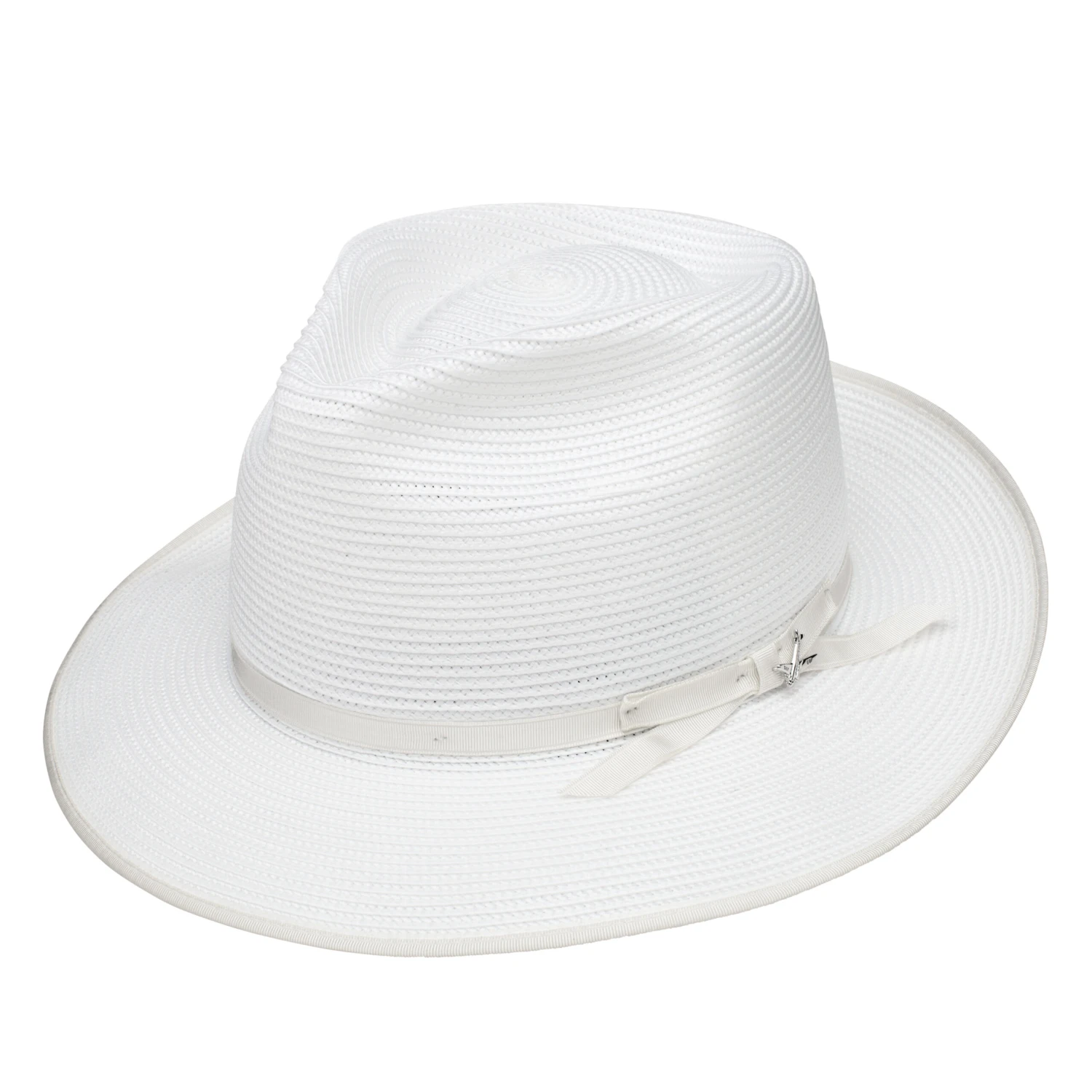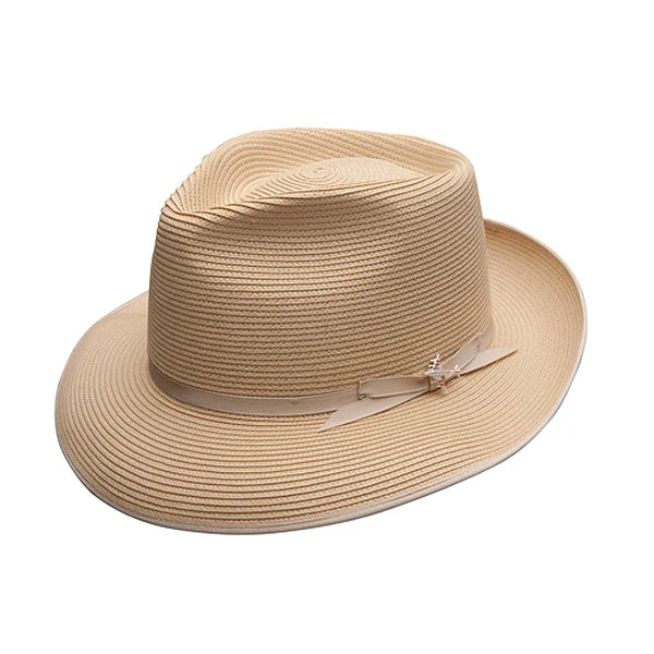 The Stetson Stratoliner Milan Straw Hat is a lightweight summer version of the popular vintage-styled fur felt Stratoliner, with all the details of the classic. The tall 4 1/2 inch teardrop crown joins a 2 1/2 inch snap brim with a bound edge that matches the slim grosgrain hat band for a subtle, elegant look. Made of smooth, fine quality Florentine Milan straw, this hat has an interior sweatband for comfort and is finished off with the traditional Stratoliner jet pin. Now you can wear a Stratoliner all year long! Made in the USA.
