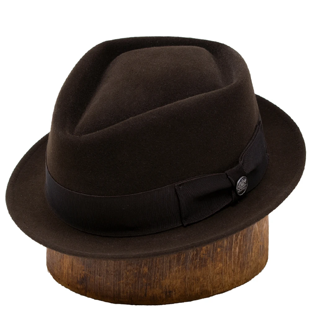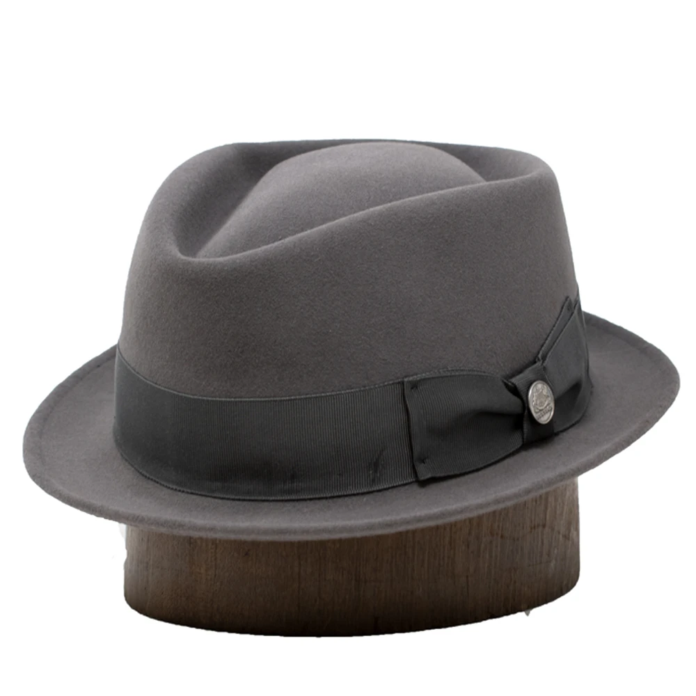 The Stetson Vector One Fur Felt Porkpie is a cool and stylish fedora hat made from 100% fur felt. This hat features a 3 1/2″ crown with diamond crease, 1 3/8″ brim with underwelt. leather sweatband, interior lining, grosgrain ribbon, and Stetson pin and box. Made in the USA.