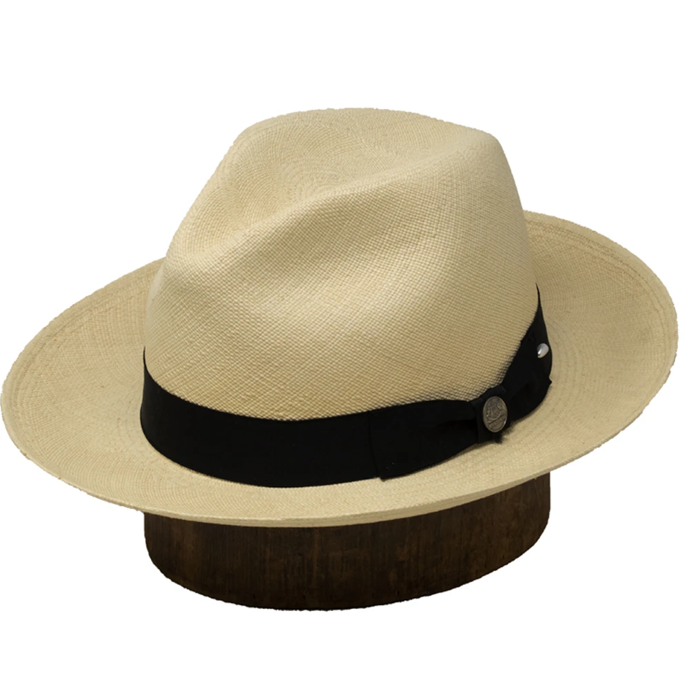 The Stetson Venino Genuine Panama Fedora is a classic and stylish panama fedora made from 100% toquilla palm woven in Mexico. This hat features a 4″ centerdent crown, 2 3/4″ brim, sheepskin sweatband, grosgrain hat band, Stetson pin and pearl pin. A grade 12 panama, the best panama Stetson has to offer.