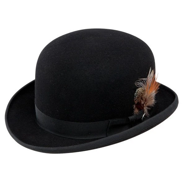 The Stetson Wool Felt Derby Hat is made from the highest quality wool felt for a smooth, soft feel. A classic derby crown meets a 2 inch rolled edge brim for a traditional look, with a bound ribbon edge that matches the simple hat band. Satin lined with a leather interior sweatband, this hat is finished with a subtle Stetson medallion pin and removable feather for a bit of extra flair. Made in the USA
