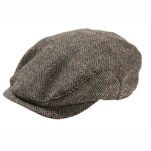Wigens Jacob – Ivy Style 100% Wool Herringbone Cap. Tweed is a herringbone pattern; Blue is a dark grey herringbone over a background of navy blue, grey and beige. Brown is a deep chocolate brown herringbone over a lighter brown background with beige and grey. Dark Grey is a black herringbone pattern over dark grey background.- In color Blue and Brown there is a faint windowpane plaid overlay. Tweed material is hand-woven in the UK. Wigens Jacob is fully lined. Swedish Design and Quality – Made in Estonia. Wigens says – Use Your Head.