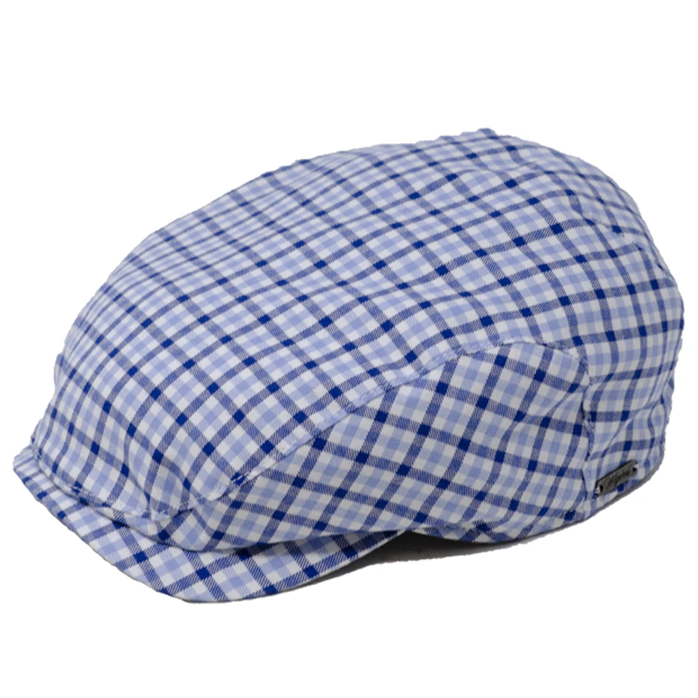 The Wigens Patrick Ivy Contemporary Cap is a light and stylish ivy cap made from 100% cotton fabric. This cap features a mid-curved peak, rounded side seam, cloth sweatband, interior mesh lining, and beautiful blue check pattern design. Designed in Sweden, made in Estonia.